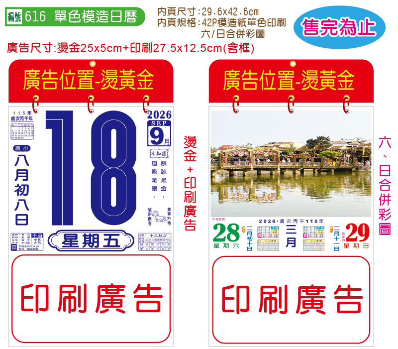 多样设计:统义实业有限公司提供616-6K直式日历【统义】2026-6K日历-616六开单色模造日历【日历工厂】【2026日历工厂】【挂历工厂】【出清品工厂】【客制化日历】【彩色日历】【超低价日历】【直式日历】【3000免运】的多样化设计