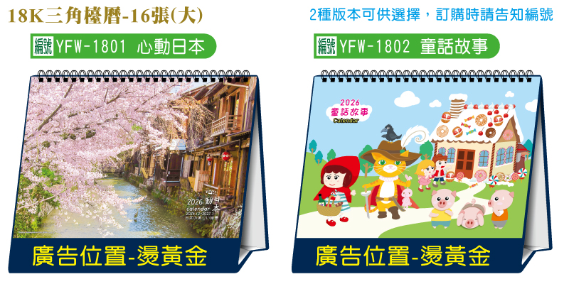 YFW-1801心动日本【统义】2026年18K跨年度三角檯历(大)【桌历工厂】【大本桌历】【风景桌历】【客制化工厂】【出清品工厂】【三角檯历工厂】【礼赠品工厂】【超便宜工厂】【3000免运】【三角桌历工厂】接受进行原厂委託代工制造OEM